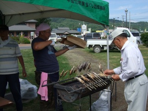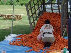 コンテナに一杯の人参、焼き魚などが売られてましたよ~