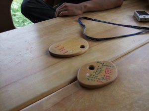 テーブルに着くと木のプレートに書かれたメニューを見て