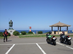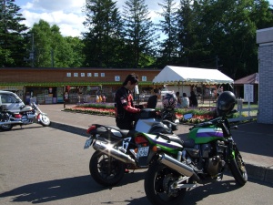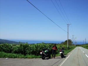 待ち合わせは支笏湖湖畔、朝、気持ち良い青空の下