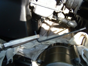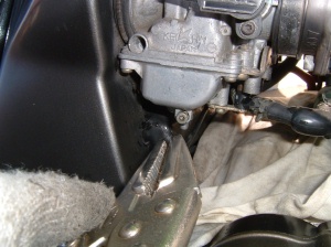 ZRXは右側からしかドレンボルトを緩める事ができないから一苦労
