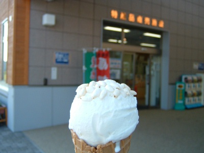 お米ソフト、クリームの上にお米あられが乗っかっていました