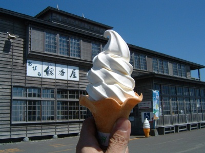 小平鰊番屋で休憩、恒例のソフトクリームを食べた